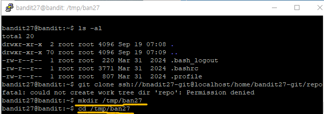 [3] bandit27@bandit:~$ mkdir /temp/ban27