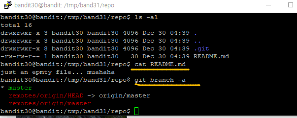 [3] bandit30@bandit:~$ cd /tmp/band31