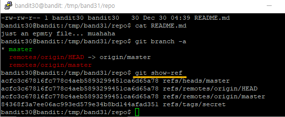 [10] bandit30@bandit/tmp/band31$ git show-ref